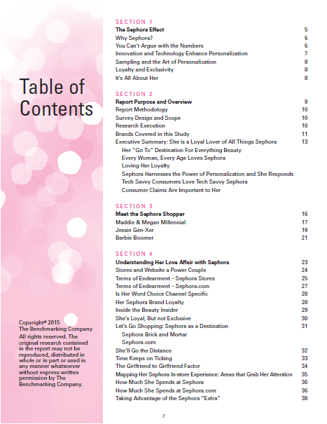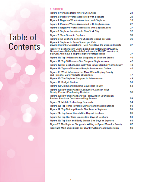 The 2015 PinkReport is an independent analysis of the Sephora shopper and was not commissioned or requested by the company. All analyses and investigations are independent and unbiased. Unless otherwise noted, all statistics in this report are based upon a sample size of women noted above who indicated they shop at Sephora or Sephora.com.