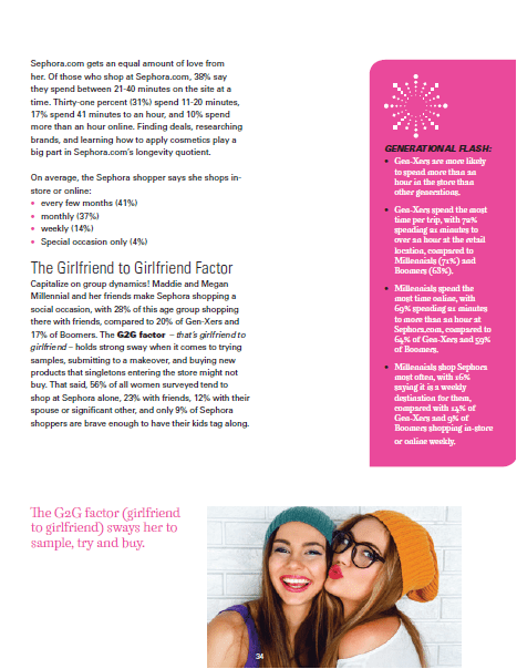 The Sephora Shopper is a must-read, one-of-a-kind generational analysis of the U.S. female consumers’ purchase influencers, shopping behaviors and buying patterns at the extraordinary beauty giant, including hundreds of data points and more than 25 detailed statistical graphics. Know the brands she loves, what makes her go over her budget limit when in-store and online, who she shops with, how often she shops, why she shops at Sephora and the special place in her heart for Sephora brands, and more. BONUS: Includes the eight things every brand needs to know if they want to sell at Sephora!
